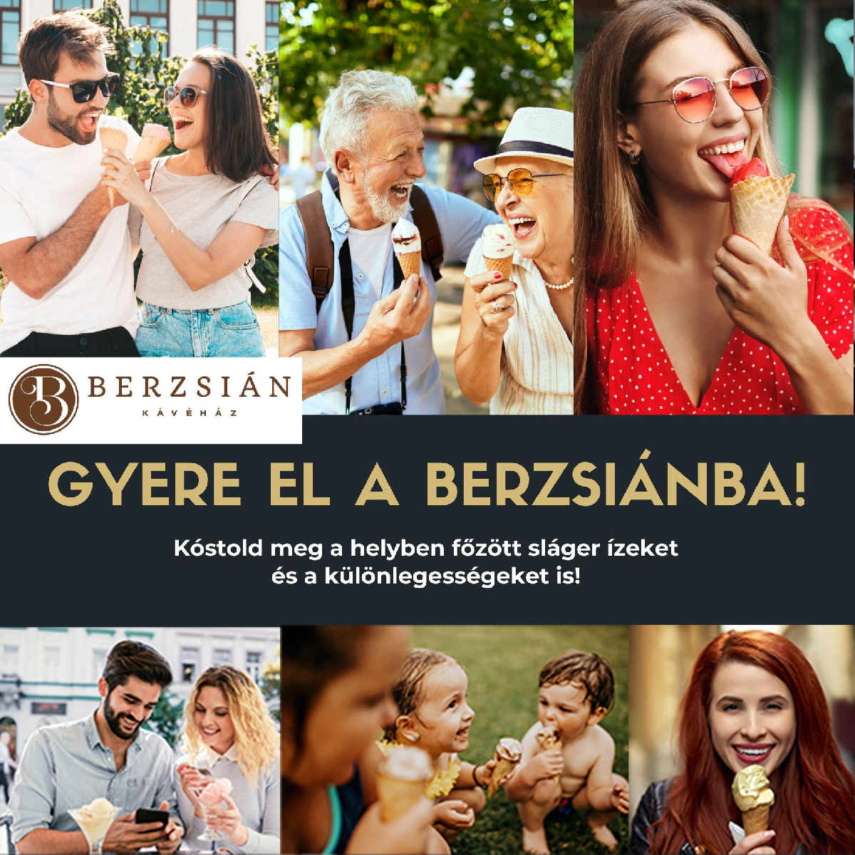 Szeretettel invitáljuk a Berzsián Kávéházba, ahol a kávé nem csupán ital, hanem életérzés. A kávéház tulajdonosai egy olyan helyet álmodtak meg, ahol kimagasló minőségű, természetes alapanyagokból, helyben főzött, mesterséges anyagoktól mentes fagylaltok, kávék és sütemények ízét élvezhetik a vendégek, és egyedülálló kikapcsolódási lehetőséget találhatnak.